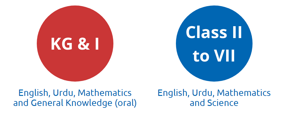 There is no written test for pre-school. The admission test for primary and secondary school is based on the following subjects and classes